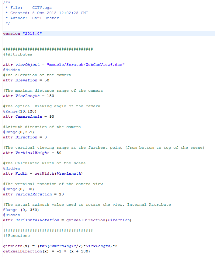 - Object: The Object rule uses the i-function to transform the CCTV point to an existing triangular Collada shape and then calls the Rotate rule.