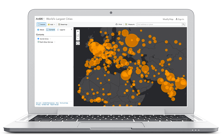 ArcGIS Online is a complete cloud-based mapping platform that allows you to create and share maps and apps with anyone. ArcGIS Online is scalable and secure software-as-a-service (SaaS) that features ready-to-use maps, data, and apps. You can deploy solutions and be productive right away, on whatever device you use—desktops, browsers, smartphones, or tablets.