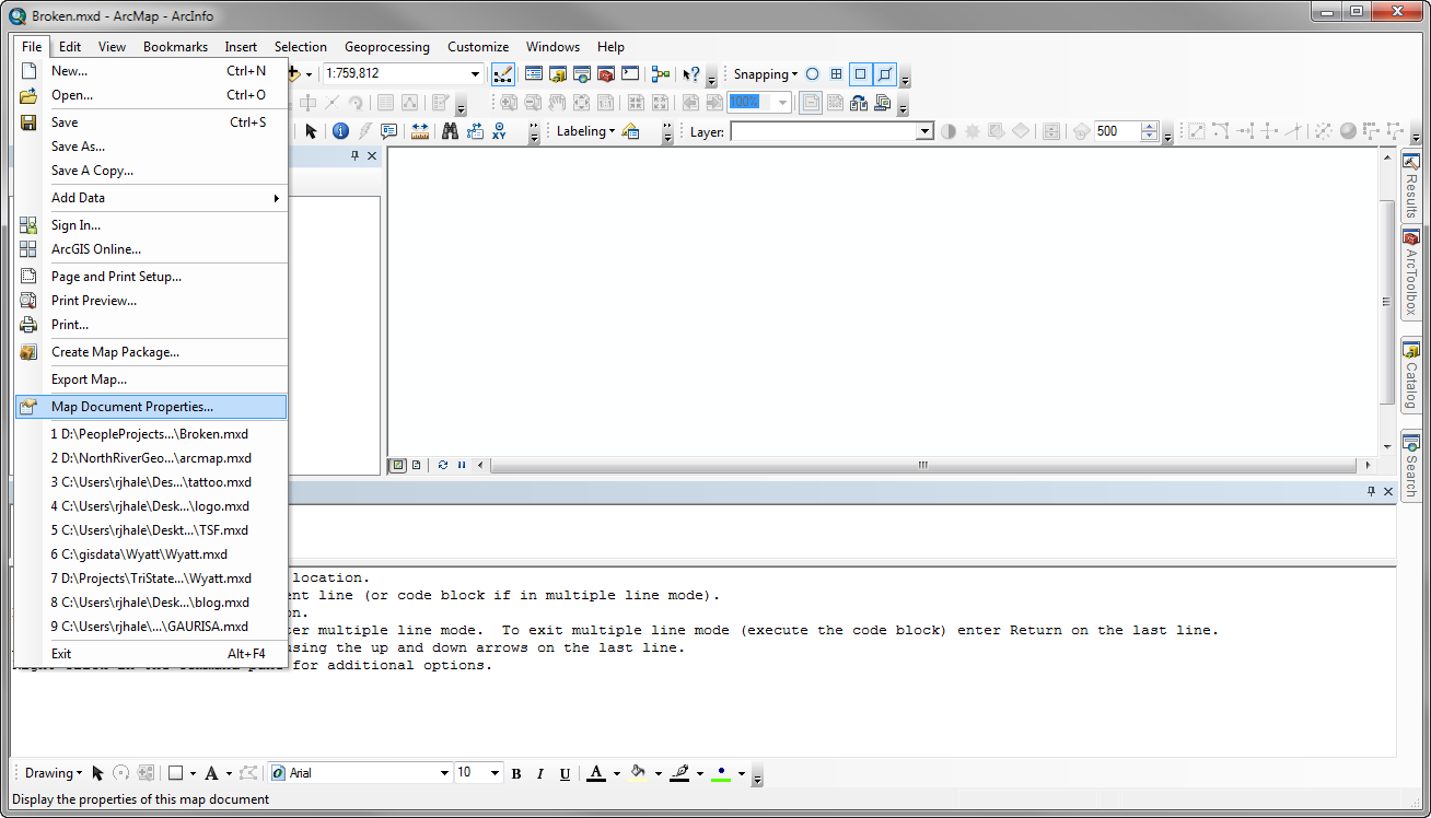 Often you may need to repair data sources and broken links in your MXDs. The idea of fixing this problem manually can be tedious, particularly when having data from multiple sources. ArcMap has an ability to store the pathname to the data within the map document (MXD) so when you reopen your map document, ArcMap locates the data using these stored pathnames. By default, ArcMap references the data source using absolute file or full paths. A full path begins with a drive letter followed by a colon, such as D: An example of an absolute full path is: Y:\GIS\data\DB\Provinces.shp.