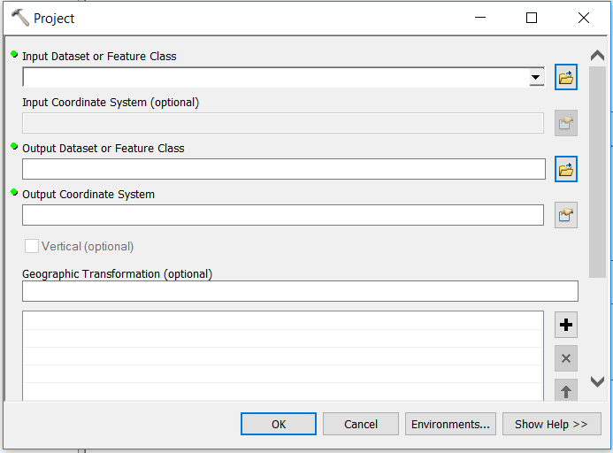 5. Project the data using the Projection Tool (This tool is to change the dataset from one coordinate system to another)project tool