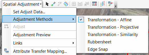 Like Georeferencing; Spatial Adjustment aligns the original dataset to a reference data, based on links between corresponding control points. The major difference between the two methods is the original datasets and the usage of the method; Georeferencing is used to re-create a missing or unknown spatial reference for Raster or CAD data while Spatial Adjustment is used to correct the alignment of editable vector data.