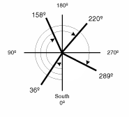 Directions are measured clockwise which is the opposite for GIS data (counter clockwise).